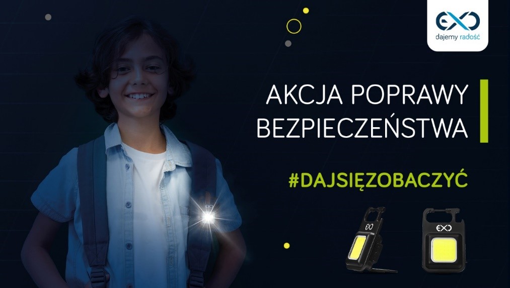 Akcja #dajsięzobaczyć zakłada wyposażenie uczniów szkół podstawowych w bezprzewodowe latarki, które poprawią ich widoczność na ciemnych drogach. eXc przekaże do wybranych szkół podstawowych 1000 latarek eXc NANO. Dzieci będą mogły je nosić na plecakach lub kurtkach, dzięki czemu będą lepiej widoczne na ciemnych drogach i poboczach.