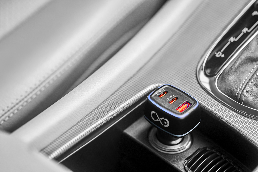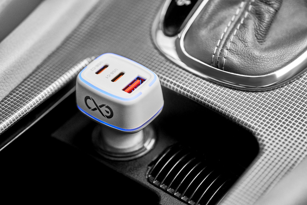 Uniwersalna ładowarka samochodowa eXc LIGHT, 2x USBC PD + 1x USBA, 75W