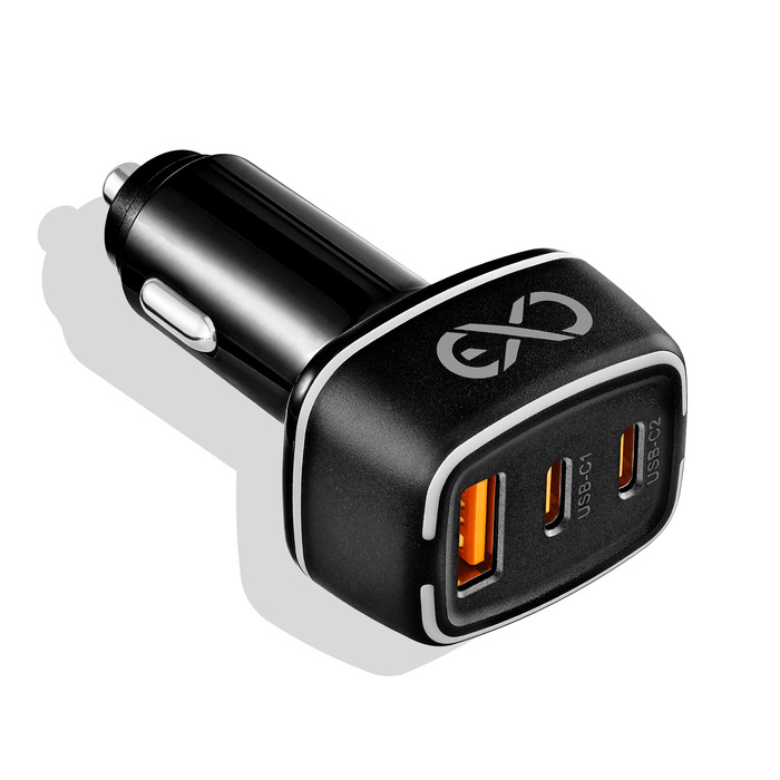Uniwersalna szybka ładowarka samochodowa eXc LIGHT, 1x USB-A QC+2x USB-C PD, 75W, czarna