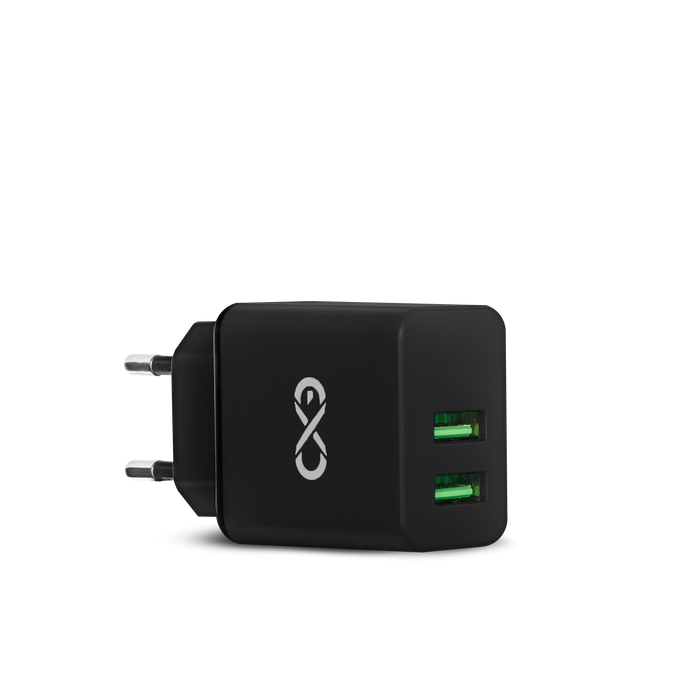Uniwersalna ładowarka sieciowa eXc BASIC,2xUSBA QC,18W,czarna