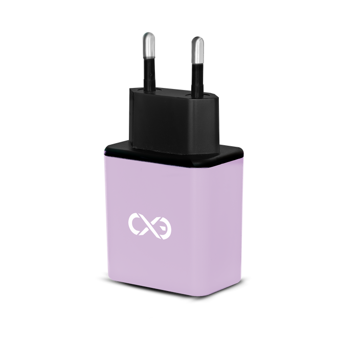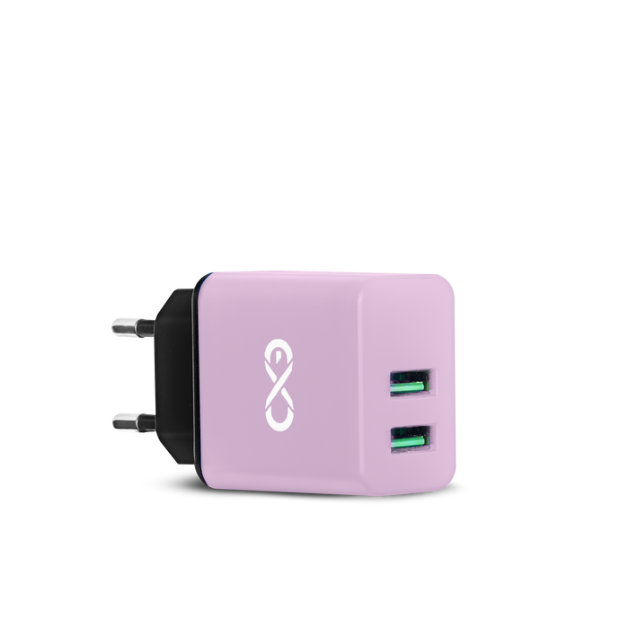 Uniwersalna ładowarka sieciowa eXc BASIC,2xUSBA QC,18W,liliowo-czarna